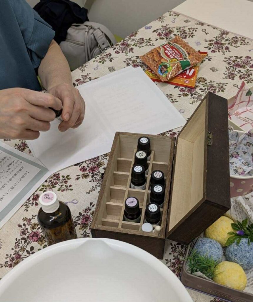 今回のバスボム作りでは、香りを選ぶ時に1つ1つ香りを確かめながら選んでいたAさん。