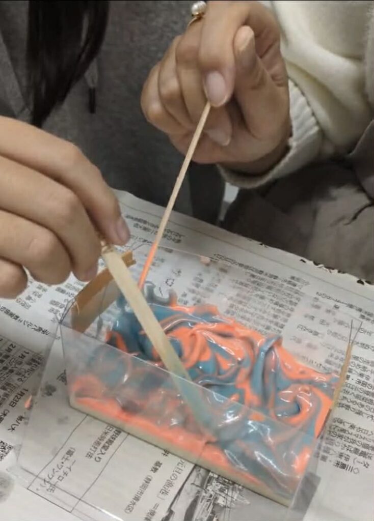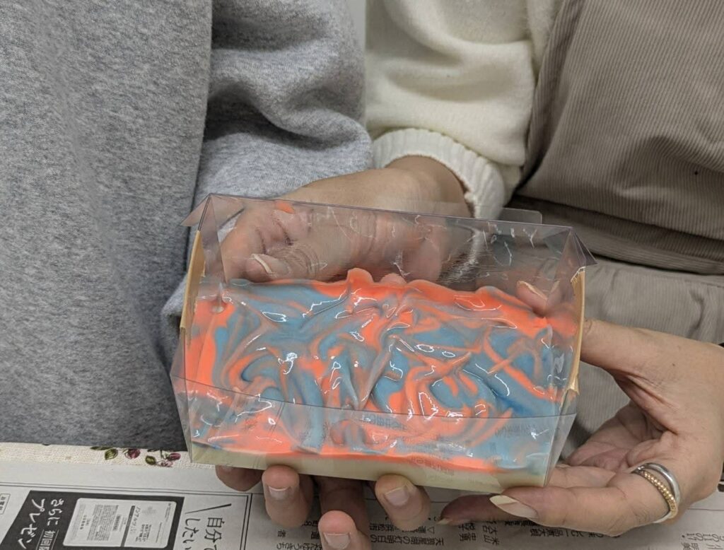 石けん作りでは、娘さんと一緒に可愛くデザインされていました!